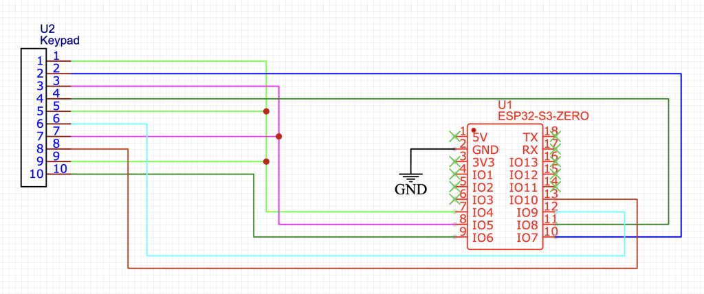 Damit das Ganze funktionieren kann, muss das Tastenfeld mit dem ESP32 verbunden werden. An dem Tastenfeld des Telefons ist ein kurzes Flachband. Also, genau genommen ist es auf der Platine des Telefons und muss von der befreit werden. Danach müssen folgende Pins entsprechend mit dem ESP32 verbunden werden.