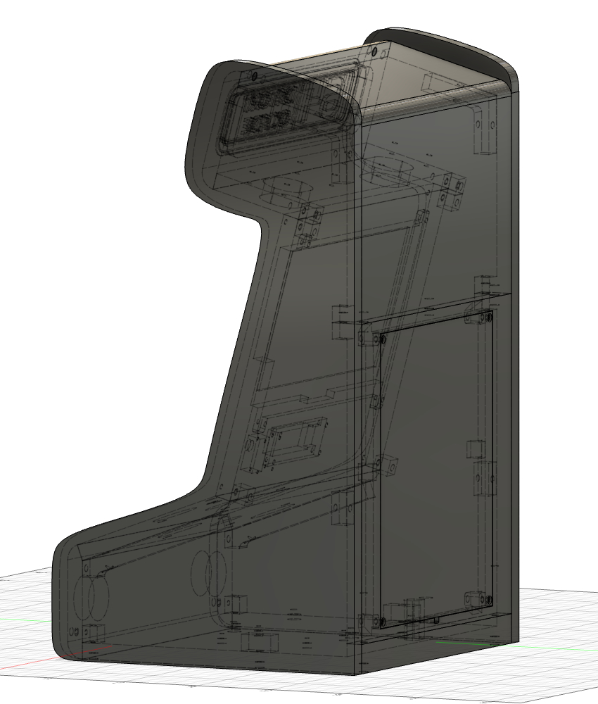 Der erste Gedanke war, das Arcade in einen Holzrahmen zu packen. Leider stellte sich schnell raus, dass ich dafür nicht das passende Werkzeug besitze sodass das Ergebnis meinen Ansprüchen genügt. Also dachte ich mir: Schuster, bleib bei deinen Leisten. Auch wenn diese in dem Fall aus PLA bestehen sollten.