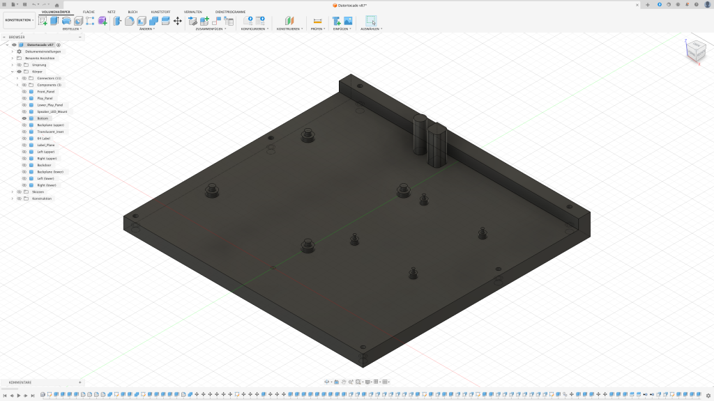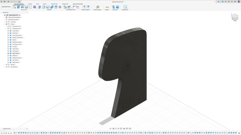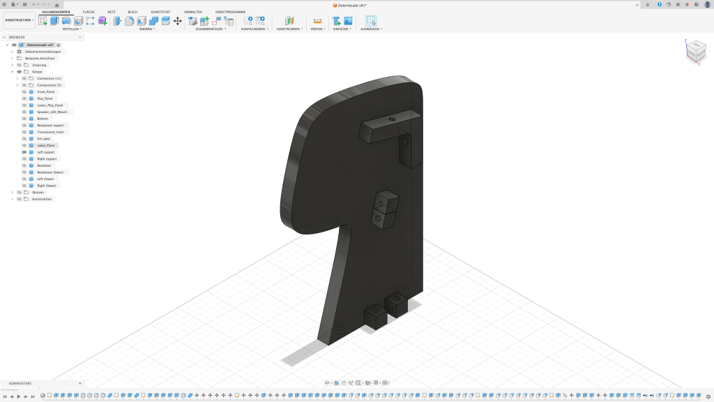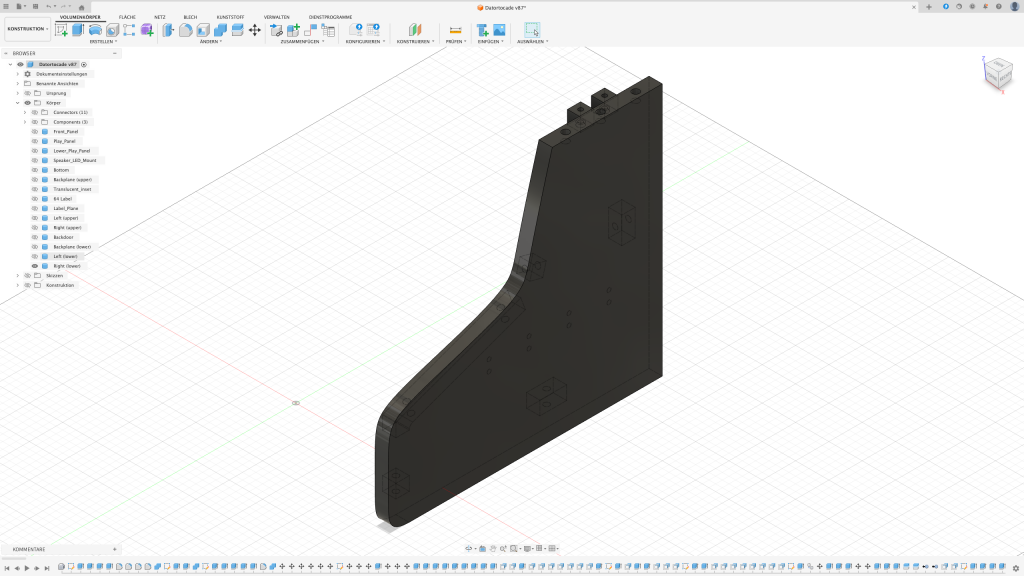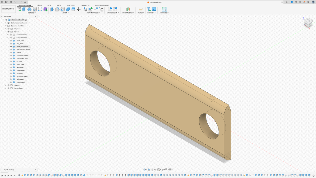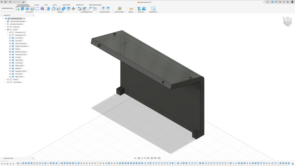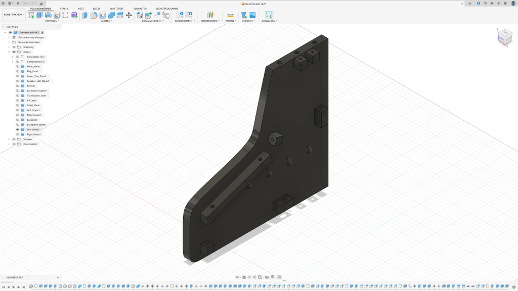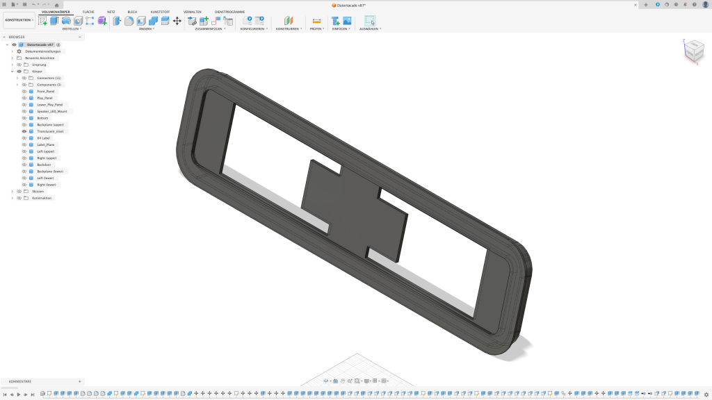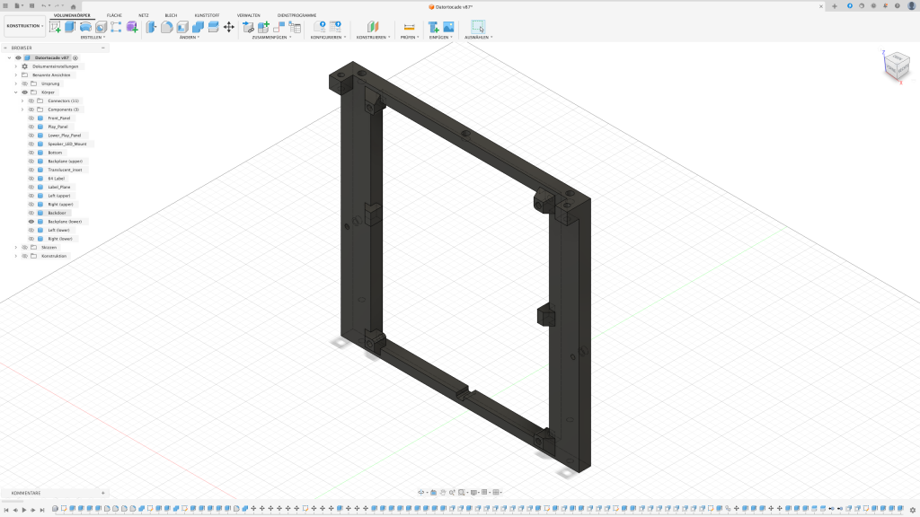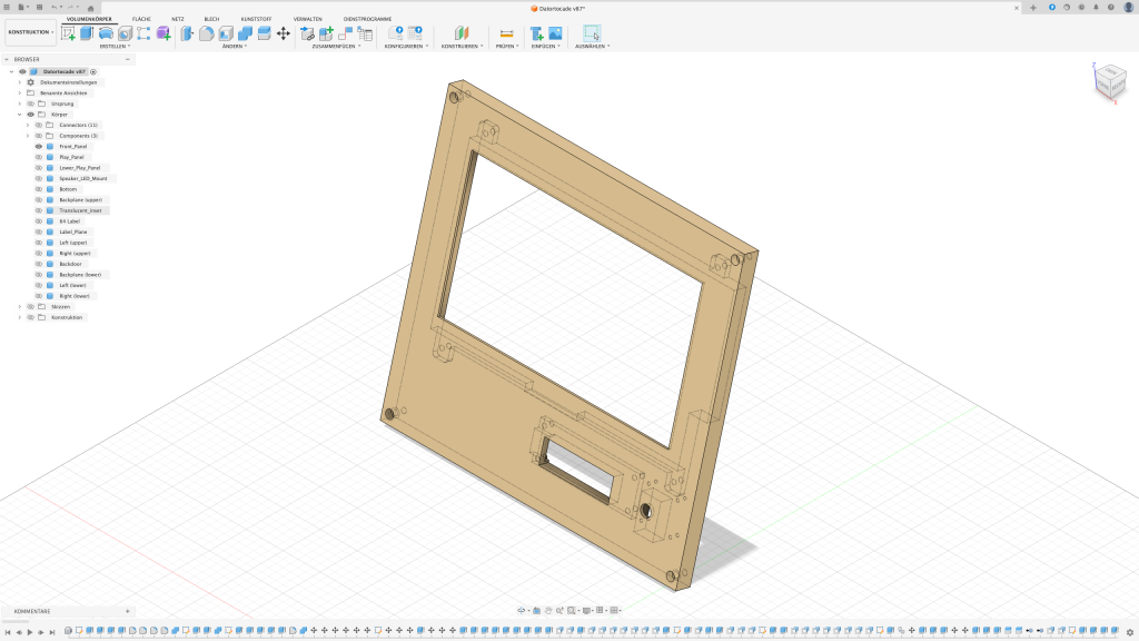Der erste Gedanke war, das Arcade in einen Holzrahmen zu packen. Leider stellte sich schnell raus, dass ich dafür nicht das passende Werkzeug besitze sodass das Ergebnis meinen Ansprüchen genügt. Also dachte ich mir: Schuster, bleib bei deinen Leisten. Auch wenn diese in dem Fall aus PLA bestehen sollten.